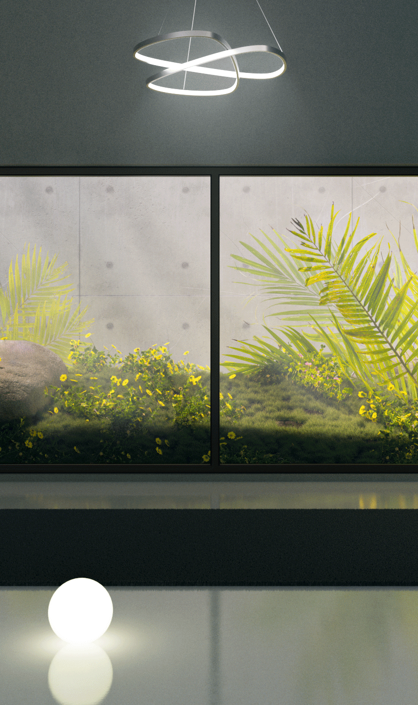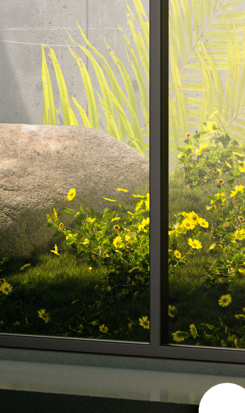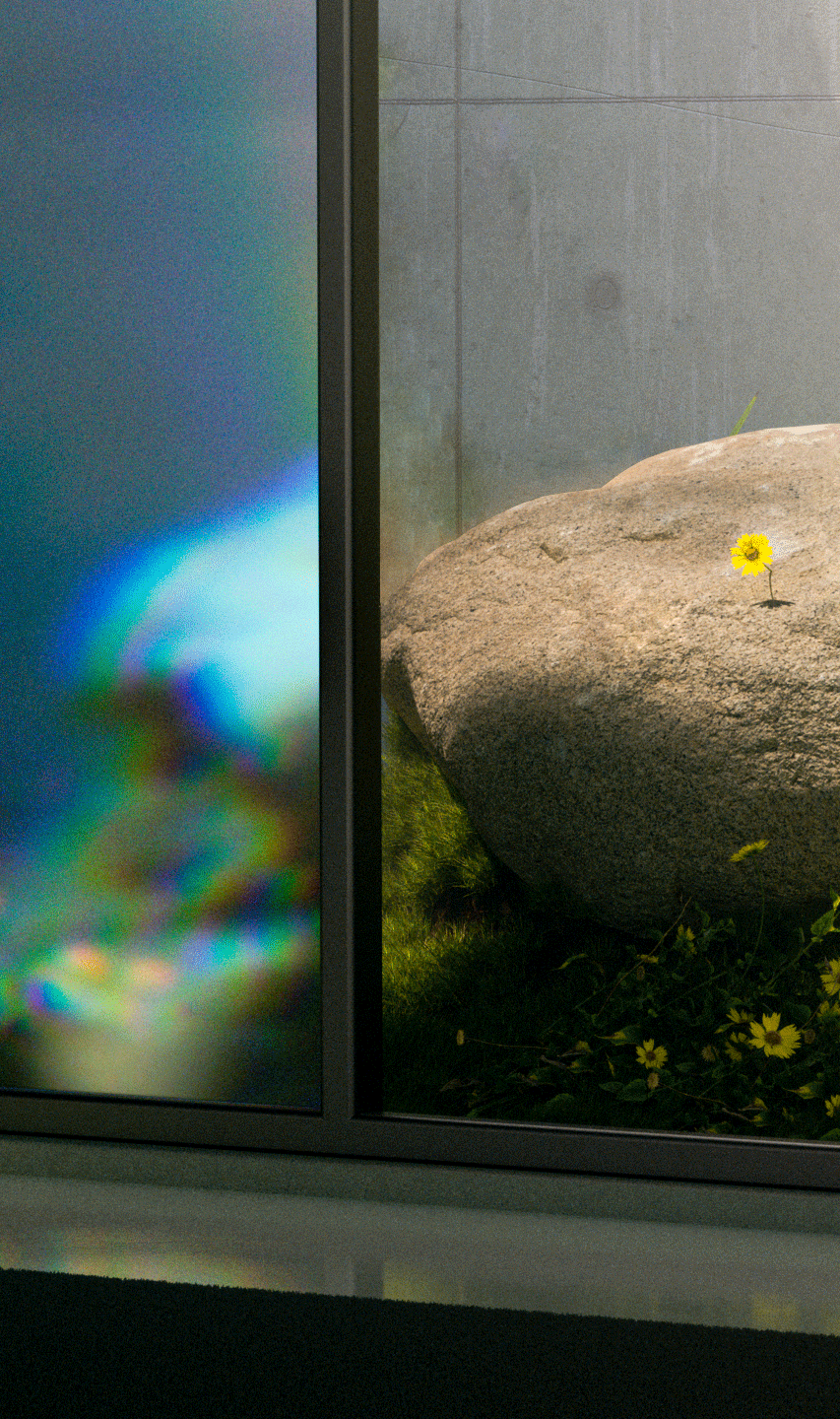 A small personal work, this one originates from a large window with a small vegetation with bright colors and some stones.