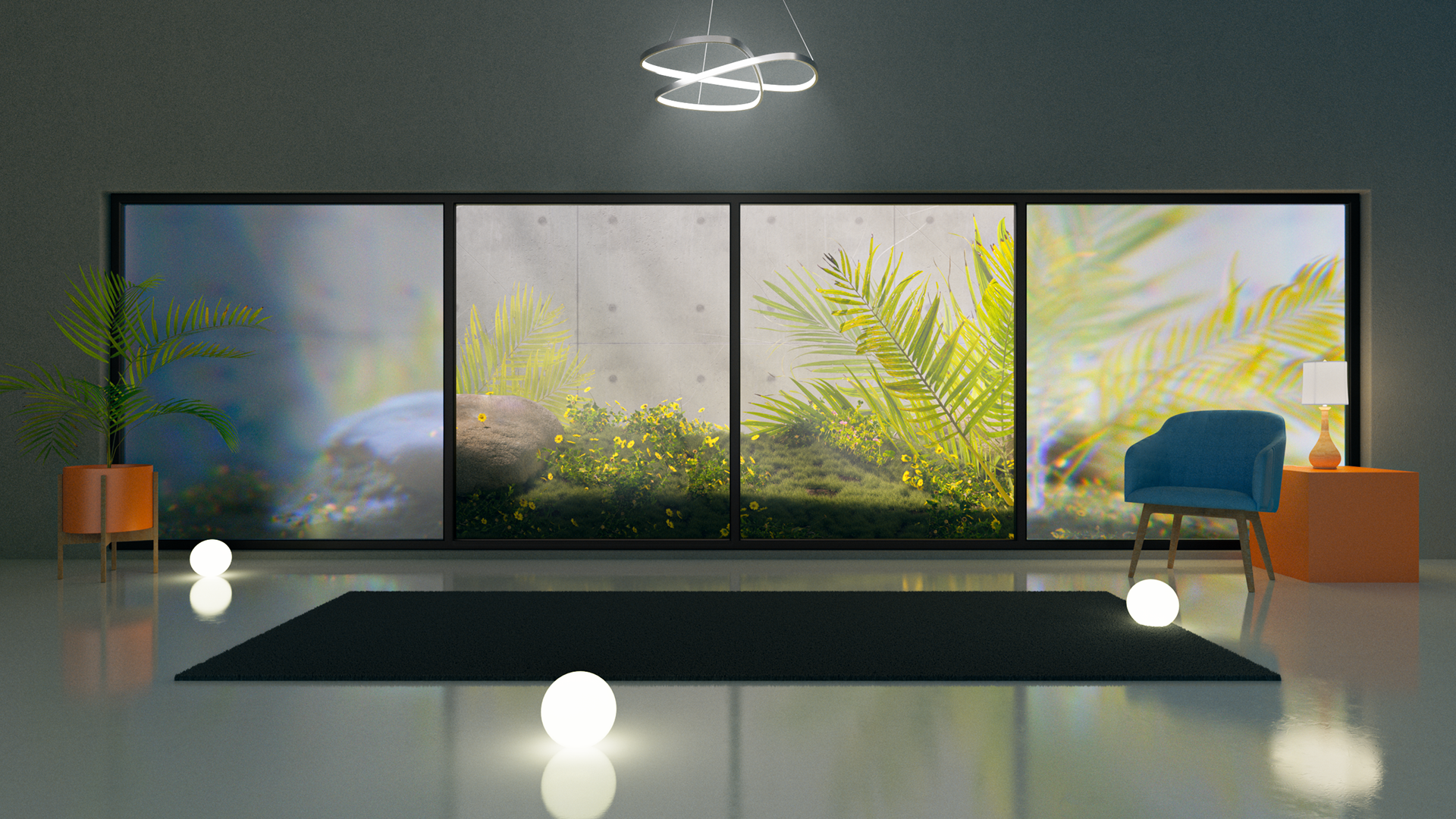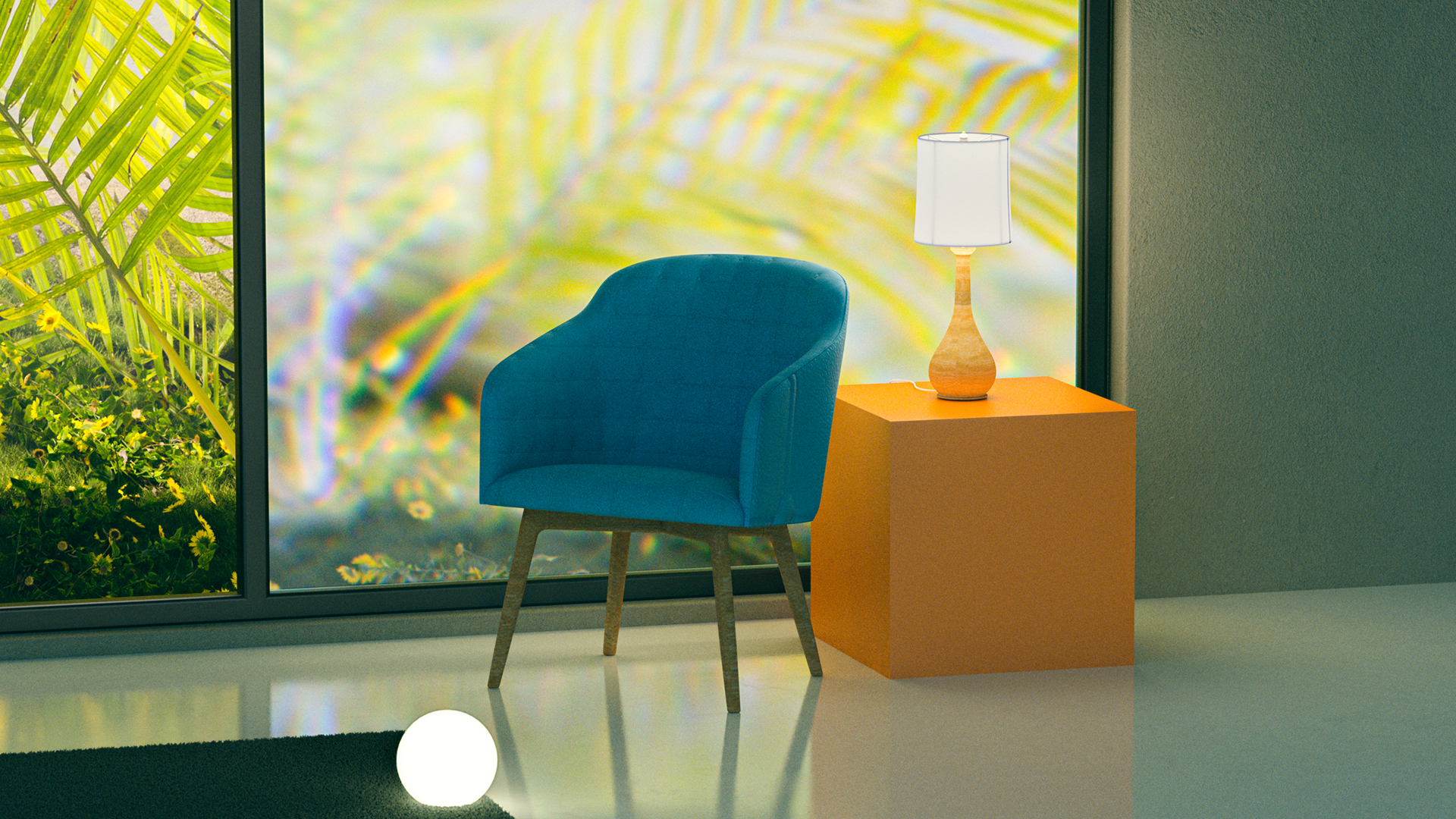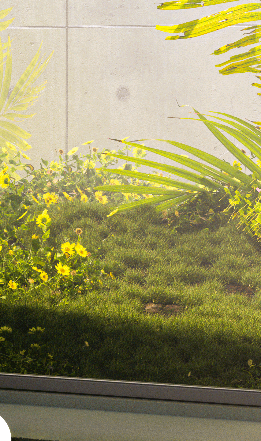 A small personal work, this one originates from a large window with a small vegetation with bright colors and some stones.
